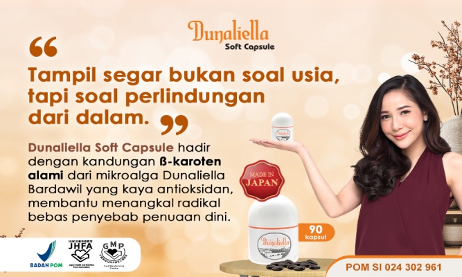 Mengandung Dunaliella bardawil yaitu ganggang merah sangat kaya akan Beta karoten yang efektif menangkal radikal bebas, Vitamin B kompleks (Vitamin B1, B2, B6, B12), Vitamin C, Ekstrak Green Tea, Ekstrak minyak kacang kedelai, dan kolagen yang bekerja sinergis memelihara kesehatan kulit.