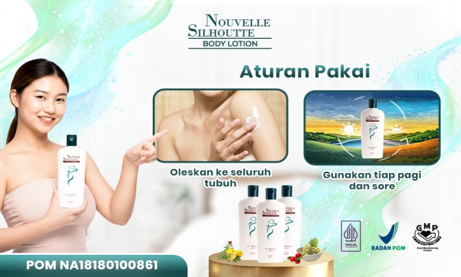 Setelah mandi, oleskan Nouvelle Silhoutte Body Lotion ke seluruh tubuh sampai merata, gunakan secara teratur setiap pagi dan sore.