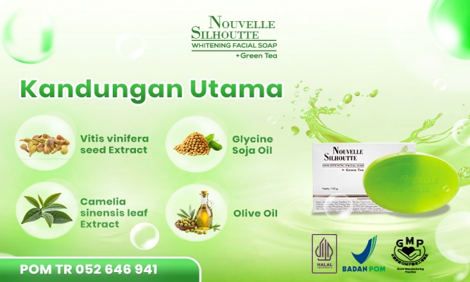 Sabun kecantikan Nouvelle Silhoutte untuk membersihkan wajah, diperkaya dengan Ekstrak Teh Hijau dan Glycine Soja Protein yang membantu merawat kelembutan dan kesegaran kulit ditambah dengan whitening agent Arbutin menjadikan kulit tampak cerah berseri.